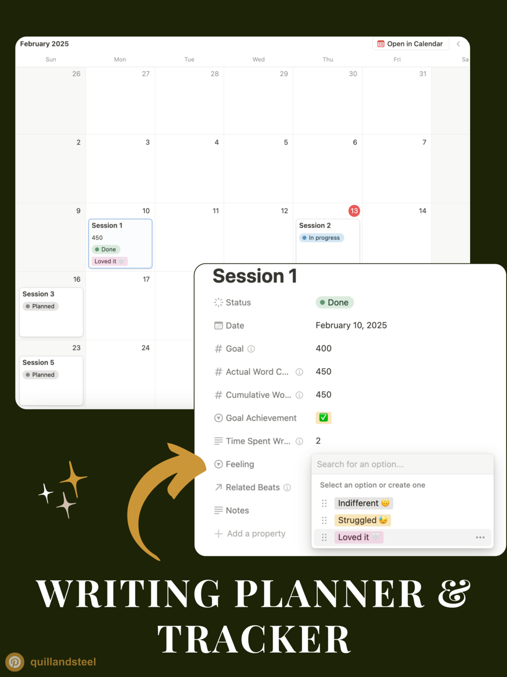 Stay on target with a built-in planner and calendar view to manage your writing sessions and word counts.