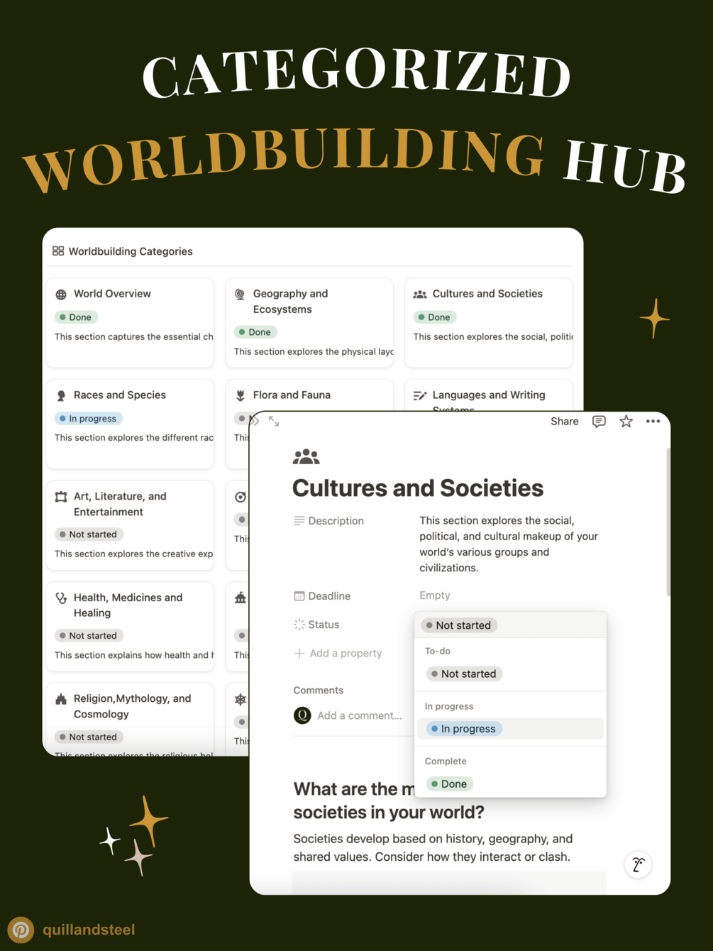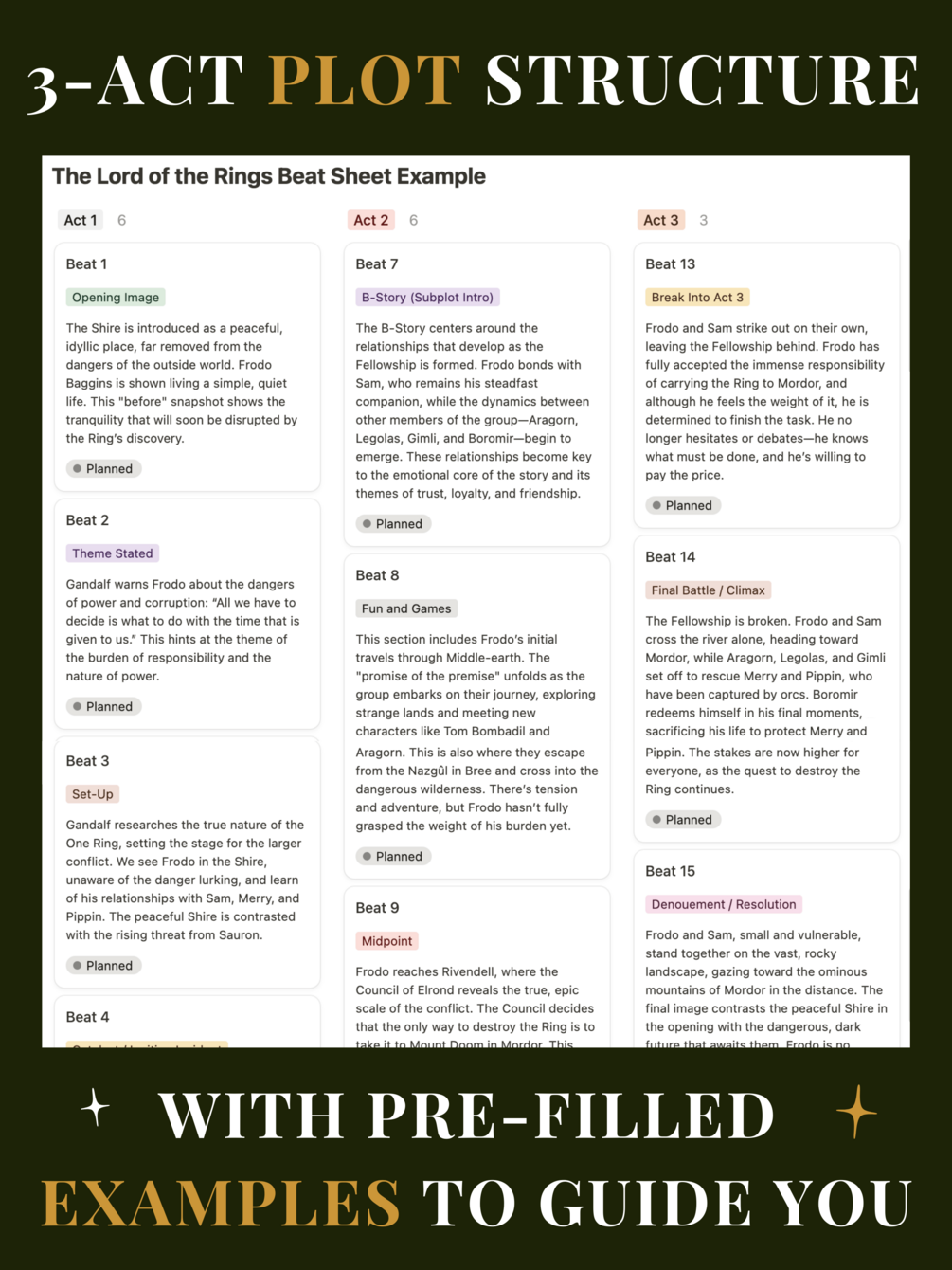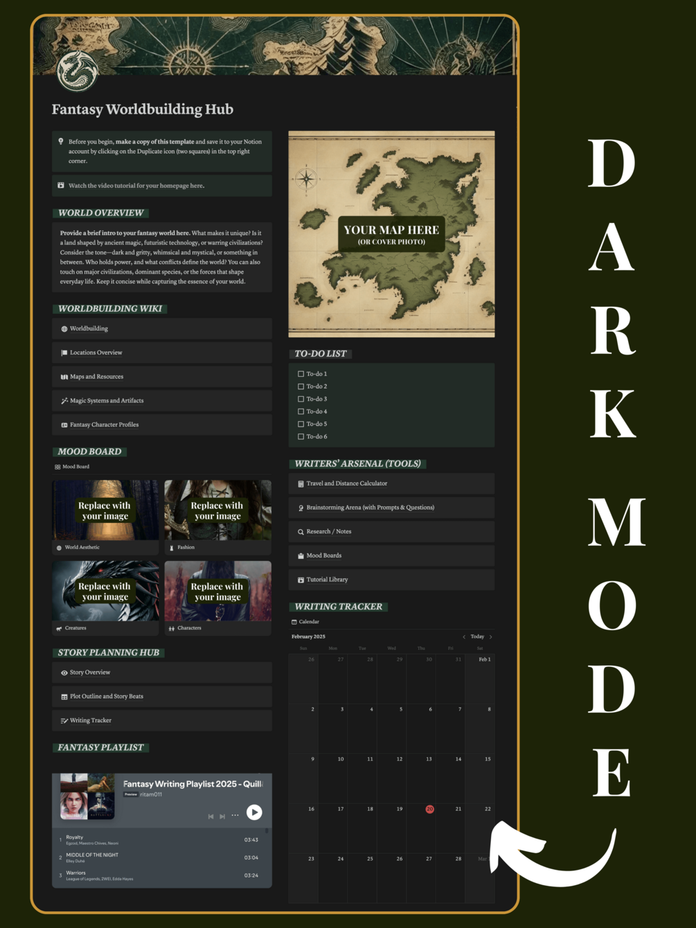 Whether you’re writing a novel or running a DnD campaign, this template helps you stay inspired, structured, and stress-free.